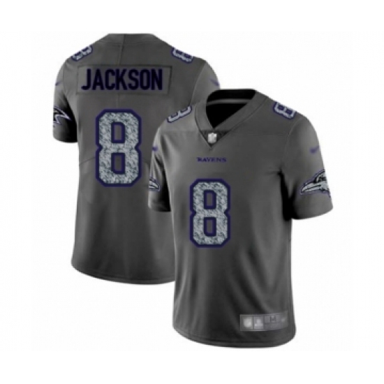 Men's Baltimore Ravens #8 Lamar Jackson Limited Gray Static Fashion Football Jersey
