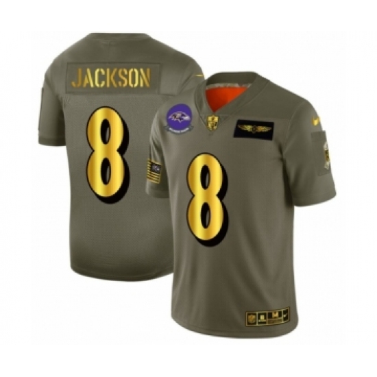 Men's Baltimore Ravens #8 Lamar Jackson Limited Olive Gold 2019 Salute to Service Football Jersey