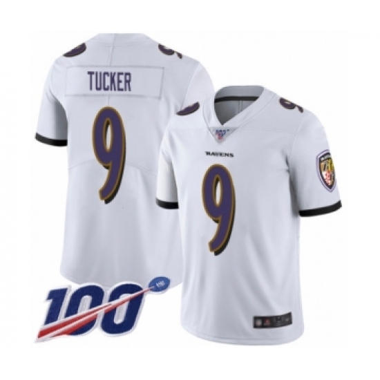 Men's Baltimore Ravens #9 Justin Tucker White Vapor Untouchable Limited Player 100th Season Football Jersey