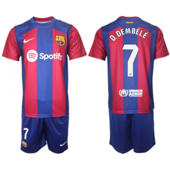Men's Barcelona #7 O.Dembele Blue Red 2023-24 Home Soccer Jersey