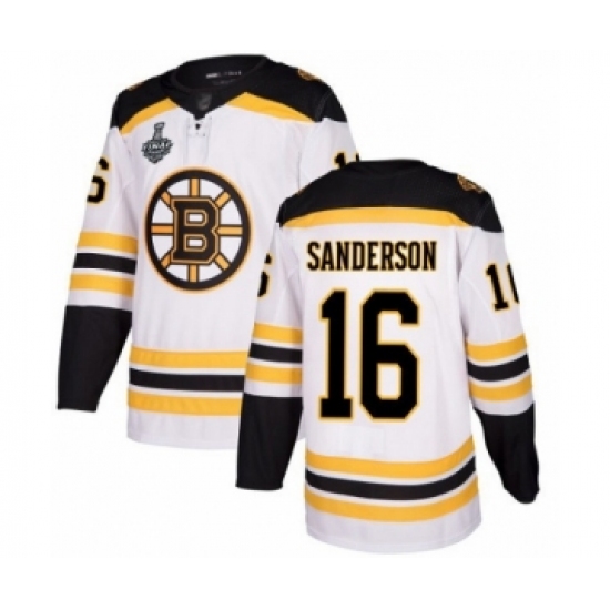 Men's Boston Bruins #16 Derek Sanderson Authentic White Away 2019 Stanley Cup Final Bound Hockey Jersey