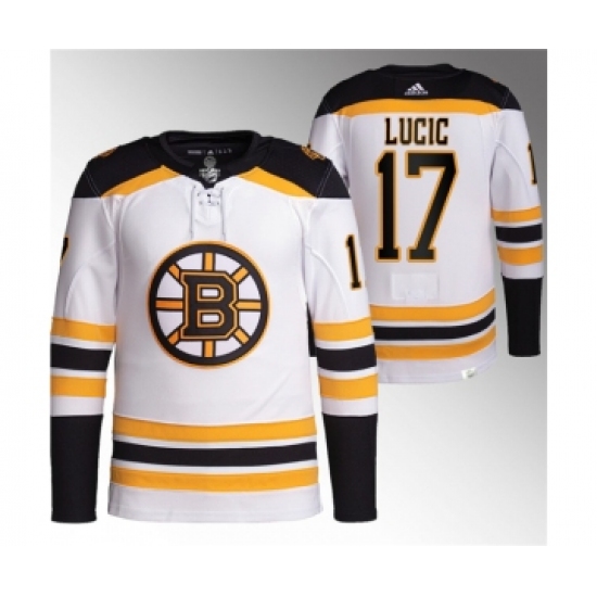 >Men's Boston Bruins #17 Milan Lucic White Stitched Jersey