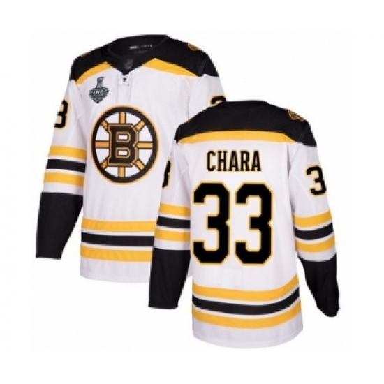 Men's Boston Bruins #33 Zdeno Chara Authentic White Away 2019 Stanley Cup Final Bound Hockey Jersey