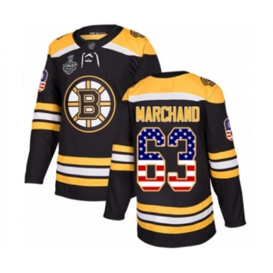 Men's Boston Bruins #63 Brad Marchand Authentic Black USA Flag Fashion 2019 Stanley Cup Final Bound Hockey Jersey
