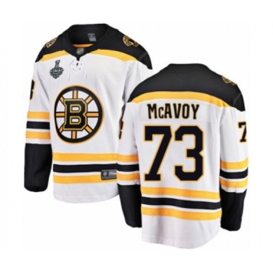 Men's Boston Bruins #73 Charlie McAvoy Authentic White Away Fanatics Branded Breakaway 2019 Stanley Cup Final Bound Hockey Jersey