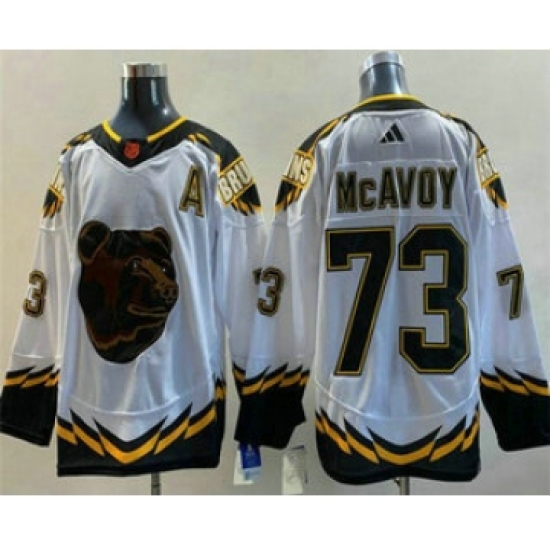 Men's Boston Bruins #73 Charlie McAvoy White 2022 Reverse Retro Stitched Jersey