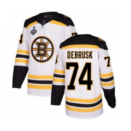Men's Boston Bruins #74 Jake DeBrusk Authentic White Away 2019 Stanley Cup Final Bound Hockey Jersey