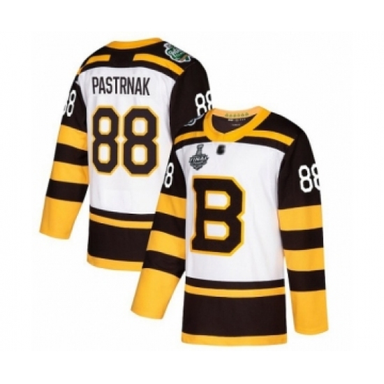 Men's Boston Bruins #88 David Pastrnak Authentic White Winter Classic 2019 Stanley Cup Final Bound Hockey Jersey