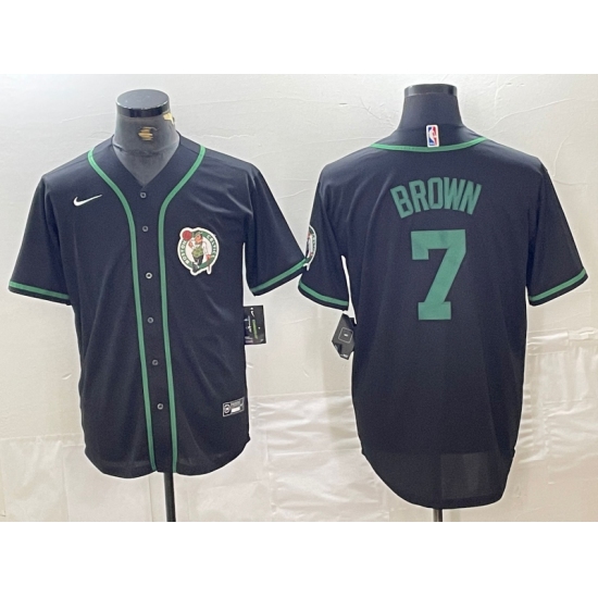 Men's Boston Celtics #7 Jaylen Brown Number Black Cool Base Stitched Baseball Jersey
