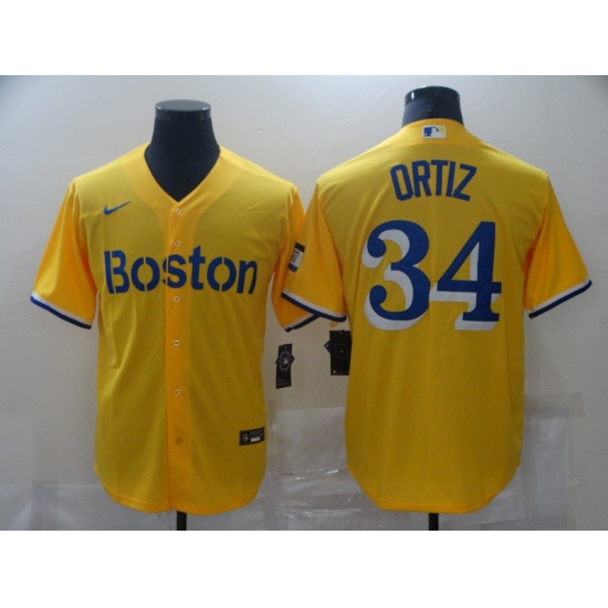>Men's Boston Red Sox #34 David Ortiz Nike Gold-Light Blue 2021 City Connect Replica Jersey
