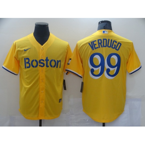 >Men's Boston Red Sox #99 Alex Verdugo Nike Gold-Light Blue City Connect Jersey