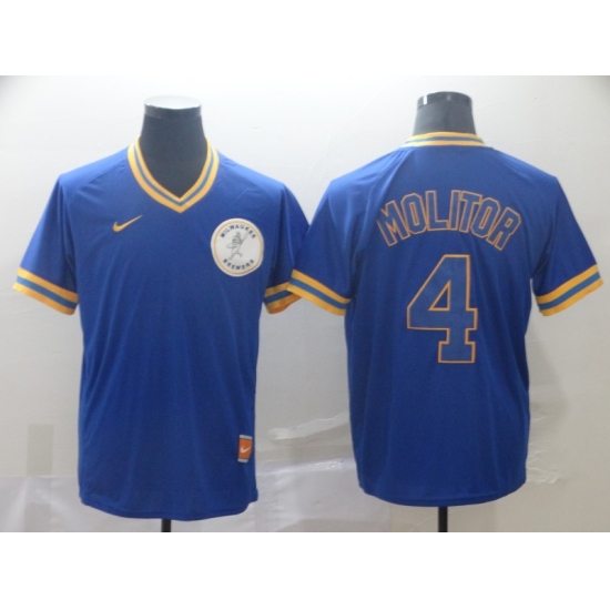 Men's Brewers #4 Paul Molitor Royal Cooperstown Collection Stitched Baseball Jersey