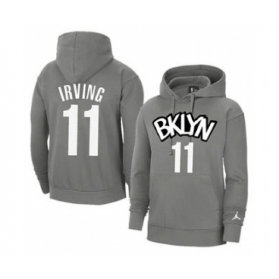 Men's Brooklyn Nets #11 Kyrie Irving 2021 Grey Pullover Basketball Hoodie