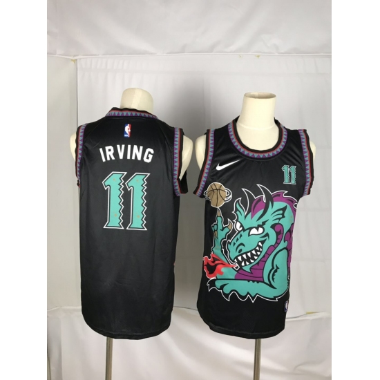 >Men's Brooklyn Nets #11 Kyrie Irving Dragon Black Jersey