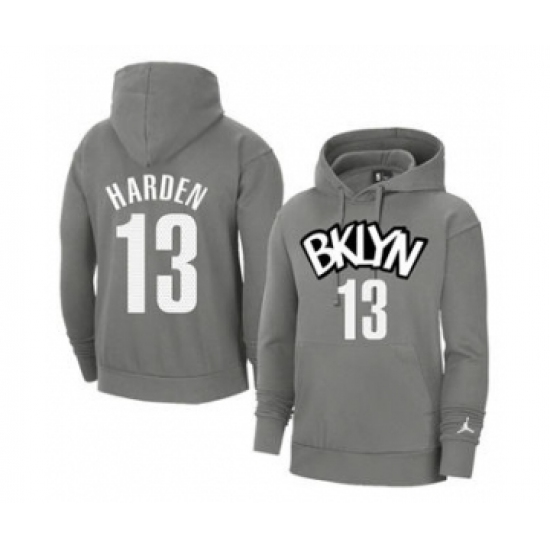 >Men's Brooklyn Nets #13 James Harden 2021 Gray Pullover Basketball Hoodie