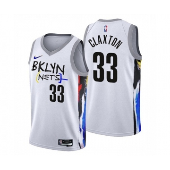 Men's Brooklyn Nets #33 Nicolas Claxton 2022-23 White City Edition Stitched Basketball Jersey
