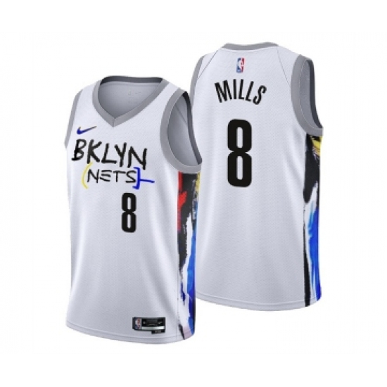 Men's Brooklyn Nets #8 Patty Mills 2022-23 White City Edition Stitched Basketball Jersey