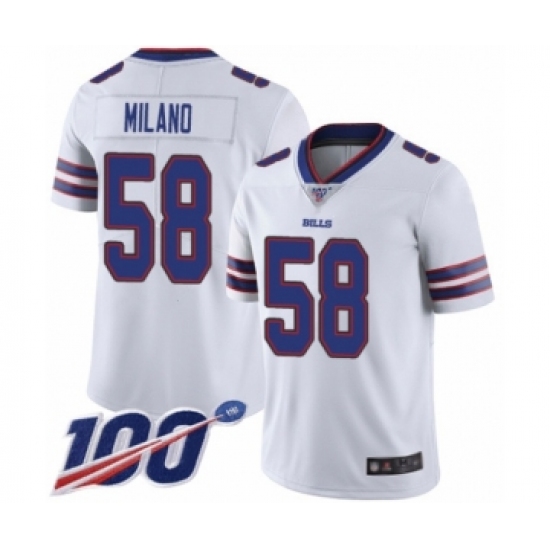 >Men's Buffalo Bills #58 Matt Milano White Vapor Untouchable Limited Player 100th Season Football Jersey