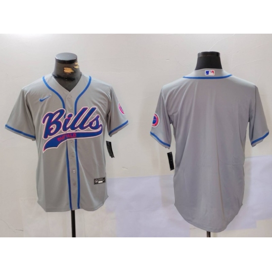 Men's Buffalo Bills Grey Team Blank Cool Base Stitched Baseball Jersey