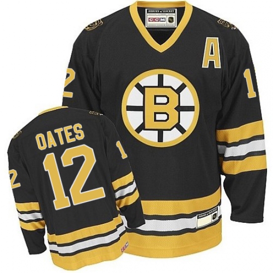 Men's CCM Boston Bruins #12 Adam Oates Premier Black/Gold Throwback NHL Jersey