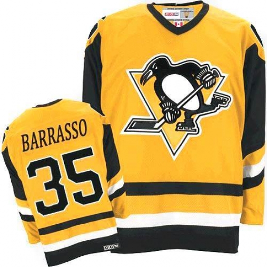 Men's CCM Pittsburgh Penguins #35 Tom Barrasso Authentic Yellow Throwback NHL Jersey