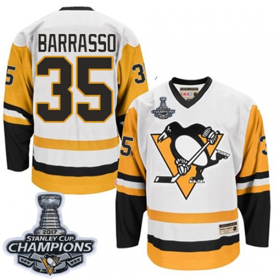 Men's CCM Pittsburgh Penguins #35 Tom Barrasso Premier White Throwback 2017 Stanley Cup Champions NHL Jersey