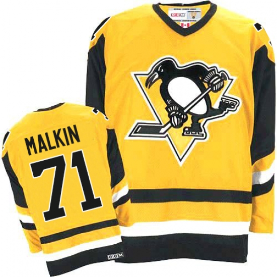 Home>NHL>Pittsburgh Penguins>Evgeni Malkin>Men's CCM Pittsburgh Penguins #71 Evgeni Malkin Authentic Gold Throwback NHL Jersey