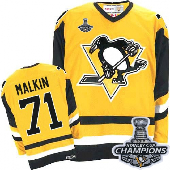 Home>NHL>Pittsburgh Penguins>Evgeni Malkin>Men's CCM Pittsburgh Penguins #71 Evgeni Malkin Premier Gold Throwback 2017 Stanley Cup Champions NHL Jersey