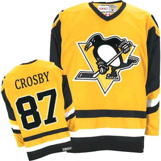 Men's CCM Pittsburgh Penguins #87 Sidney Crosby Premier Yellow Throwback NHL Jersey