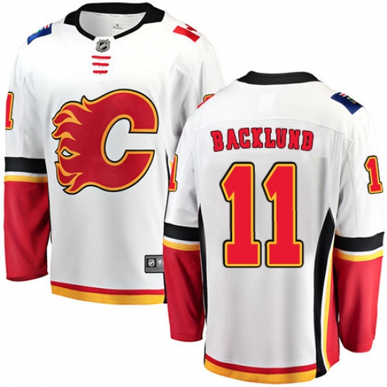 Home>NHL>Calgary Flames>Mikael Backlund>Men's Calgary Flames #11 Mikael Backlund Fanatics Branded White Away Breakaway NHL Jersey