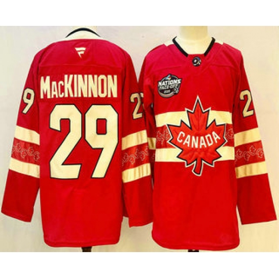 Men's Canada #29 Nathan MacKinnon Red 2025 4 Nations Face-Off Premium Stitched Jersey