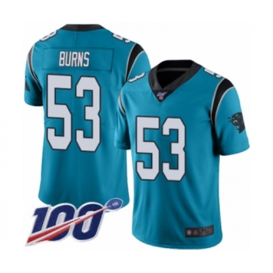Men's Carolina Panthers #53 Brian Burns Blue Alternate Vapor Untouchable Limited Player 100th Season Football Jersey