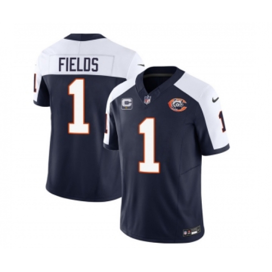 Men's Chicago Bears #1 Justin Fields Navy White 2023 F.U.S.E. 1-star C Throwback Limited Football Stitched Game Jersey