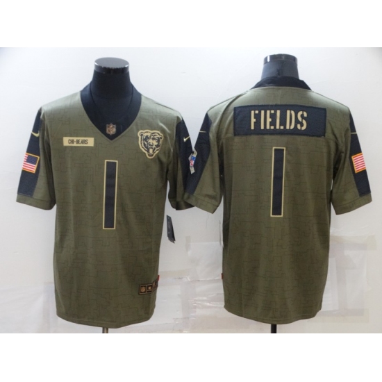 Men's Chicago Bears #1 Justin Fields Nike Olive 2021 Salute To Service Limited Player Jersey