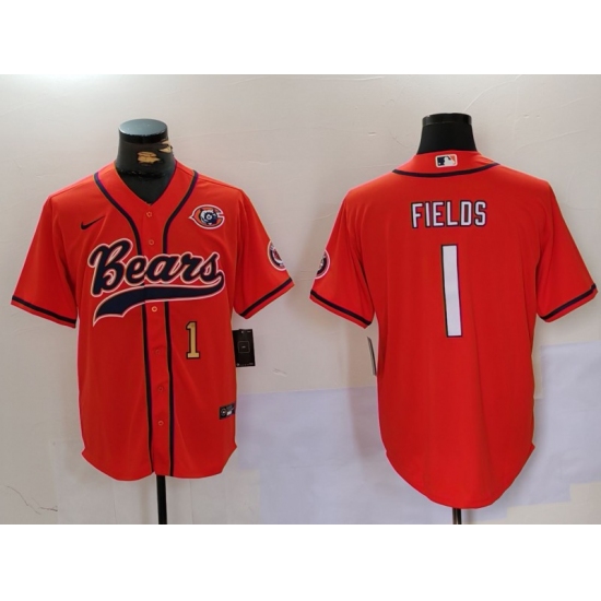 Men's Chicago Bears #1 Justin Fields Orange Throwback With Cool Base Stitched Baseball Jerseys