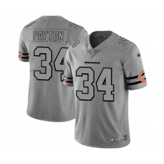 Men's Chicago Bears #34 Walter Payton Limited Gray Team Logo Gridiron Football Jersey