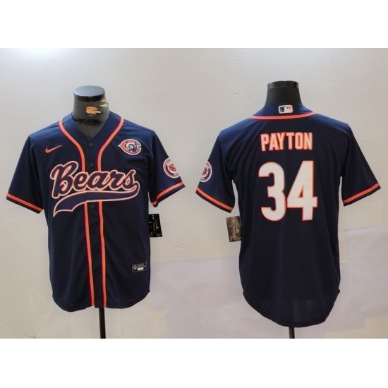 Men's Chicago Bears #34 Walter Payton Navy Throwback With Cool Base Stitched Baseball Jersey
