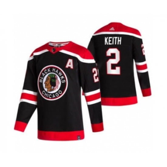 >Men's Chicago Blackhawks #2 Duncan Keith Black 2020-21 Reverse Retro Alternate Hockey Jersey