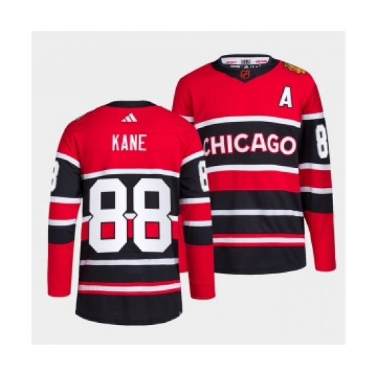Men's Chicago Blackhawks #88 Patrick Kane Red Black 2022 Reverse Retro Stitched Jersey