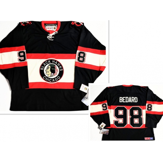 >Men's Chicago Blackhawks #98 Connor Bedard Black Ccm Classic Stitched Hockey Jersey