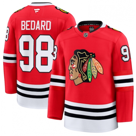 >Men's Chicago Blackhawks #98 Connor Bedard Red 2024-25 Home Stitched Hockey Jersey