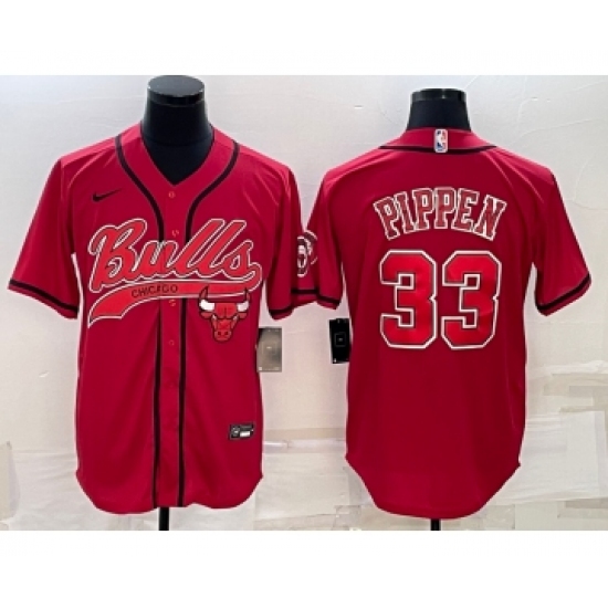 Men's Chicago Bulls #33 Scottie Pippen Red With Patch Cool Base Stitched Baseball Jersey