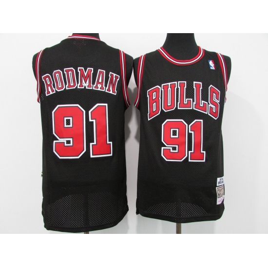Men's Adidas Chicago Bulls #91 Dennis Rodman Authentic Black Throwback NBA Jersey
