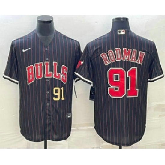 >Mens Chicago Bulls #91 Dennis Rodman Number Black With Cool Base Stitched Baseball Jersey