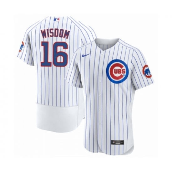 Men's Chicago Cubs #16 Patrick Wisdom White Flex Base Stitched Jersey