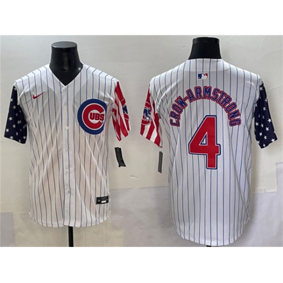 >Men's Chicago Cubs #4 Pete Crow-Armstrong White Pinstripe 2025 Independence Day Vapor Premier Limited Stitched Baseball Jersey
