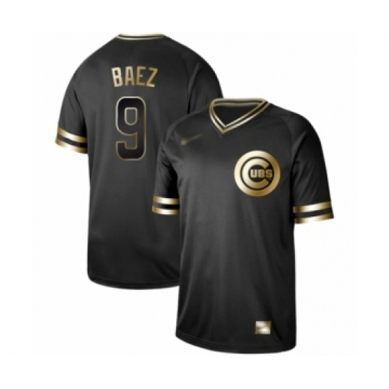 >Men's Chicago Cubs #9 Javier Baez Authentic Black Gold Fashion Baseball Jersey