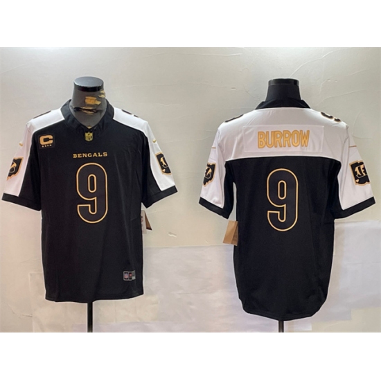 Men's Cincinnati Bengals #9 Joe Burrow Black White Limited Split Fashion Football Jersey