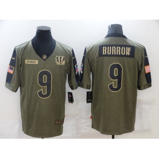Men's Cincinnati Bengals #9 Joe Burrow Nike Olive 2021 Salute To Service Limited Player Jersey