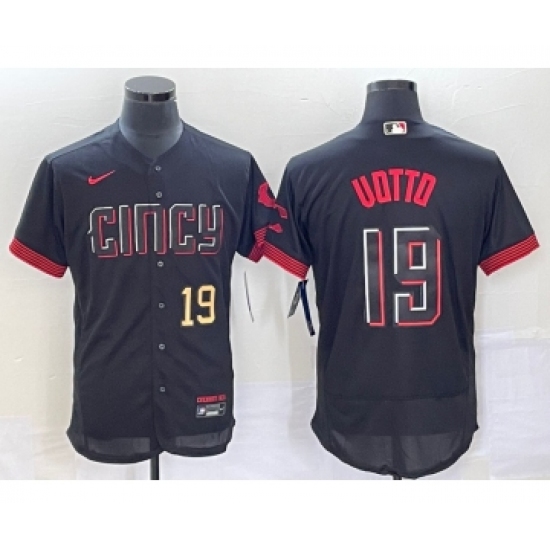 Men's Cincinnati Reds #30 Ken Griffey Jr Black 2023 City Connect Flex Base Stitched Jersey 1